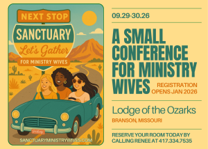 Over the past year, God has been stirring in the hearts of Chresten and Bridgette once again, challenging them to ‘enlarge their territory’. This will require picking up the tent pegs at a venue dearly loved over the past eight years to move and expand to a mini-conference model in Branson, Missouri, for September 2026. More details about Let’s Gather, a mini-conference for ministry wives, are set to release in the next few months. Much prayer is going into the foundation of this new venture, one that will echo the beloved elements of a Sanctuary Let’s Retreat while making room for a few additional guests to partake. “A combination of REST and REVIVAL will make this conference a unique hybrid of all that our guests have come to expect from Sanctuary. I plan to spoil these girls, make room for them to rest and rejuvenate, and yet provide plenty of opportunities to pour into them, allowing the Holy Spirit to be the featured Guest!” boasts Bridgette, the Let’s Gather host.