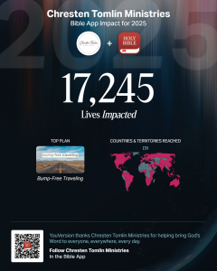 PS Let’s take a moment to celebrate our reach through a content partnership with YouVersion! Over 17,000 subscribers in 139 countries read from my six Bible reading plans found on the FREE YouVersion Bible reading app. Discover Chresten Tomlin Ministries on YouVersion and commit to reading more of God’s Word in 2026 by clicking here.